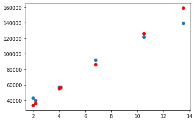 결과는 잘 나왔다 우리가 구한 값과 예측값이 비슷한 궤도로 잘 맞아 떨어진다. (빨간점이 예측값이다)