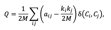 네트워크에서 연관성이 높은 노드들을 그룹화하는 작업이다. 이때 그룹화의 척도는 Modularity라고 하며, Modularity를 최대화하는 것은 NP-Hard 문제이다.