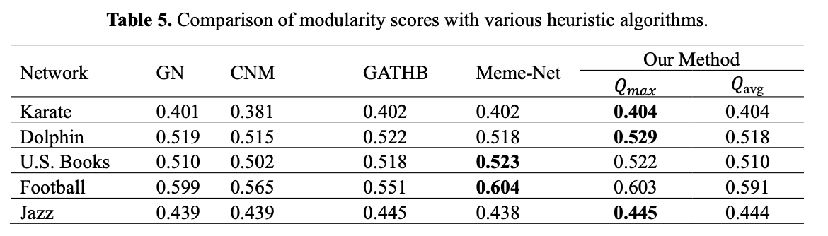 기존의 다른 알고리즘들과 비교했을 때, 몇몇 데이터 셋에서는 최대 최적값에서 약간 떨어지기도 했지만, 다른 데이터 셋에서는 가장 우수한 결과를 보였다.