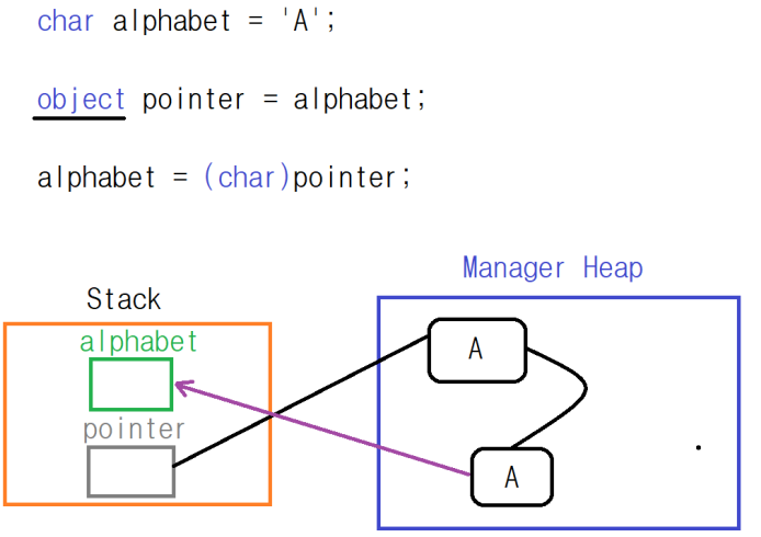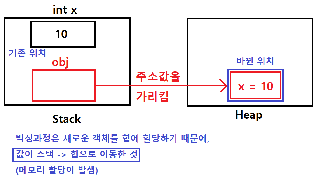 박싱 할 경우 stack의 값이 복사되어 heap에 저장