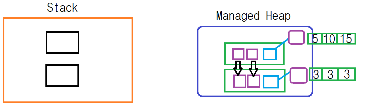 같은 메모리 공간을 참조 하고 있기 때문에 하나의 객체로 값을 변경하면 서로 참조된 객체도 함께 영향 ㅇ