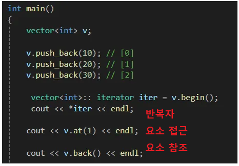 | Element access | operator[] / at(n) | ์์ ์ ๊ทผ (at()์ ๋ฒ์ ์ฒดํฌ ํฌํจ) |