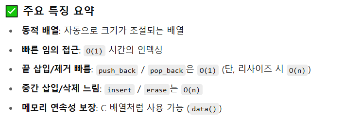 | ์์ฑ์ | vector() | ๋น ๋ฒกํฐ ์์ฑ |