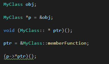 ->void (MyClass::*ptr)() = &MyClass::memberFunction;