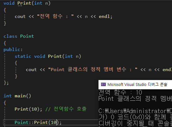 전역함수 Print(int n)와 멤버함수 Print(int n)를 생성