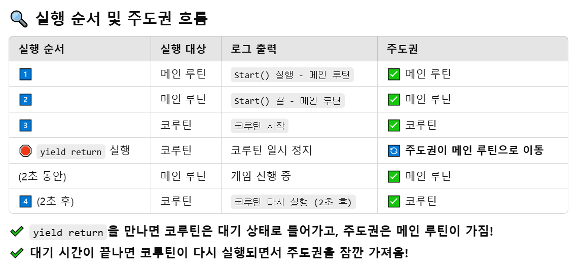 Debug.Log("1️⃣ Start() 실행 - 메인 루틴");