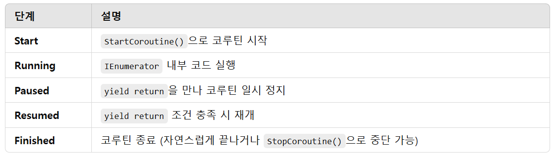 yield return)에 따라 실행을 멈췄다가 다시 실행