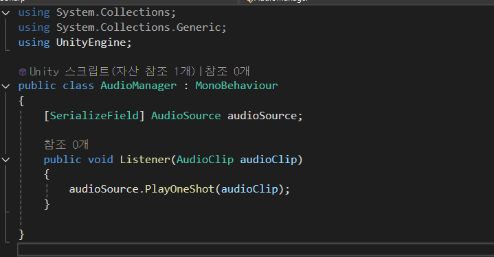매니저 스크립트에 Listener 함수를 정의하고, 매개변수로 AudioClip이 들어온다
