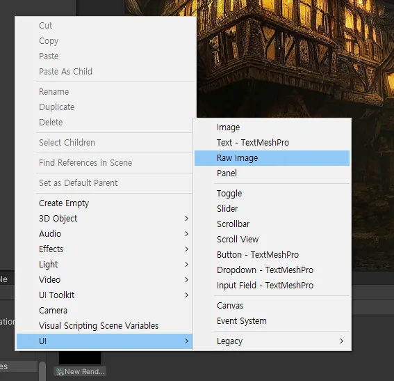 생성한 Raw Image에도 Render Texture 넣어주기