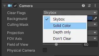 Clear Flags를 Solid Color로 변경해준다