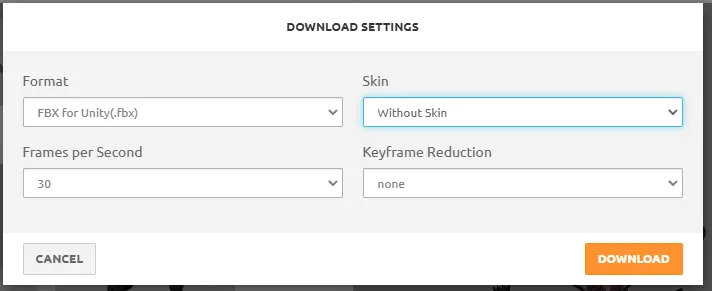캐릭터 포멧타입 : FBX for Unity(.fbx)