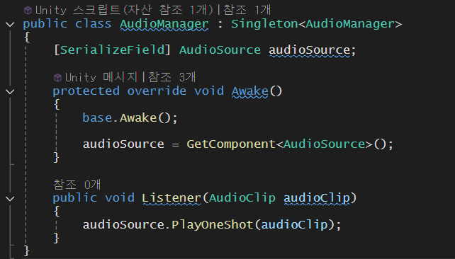 AudioManager게임 오브젝트마다 소리를 가지는 경우가 많기 때문에, Listener 함수의 호출도 잦다