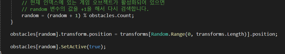 obstacles[random].transform.position = transforms[Random.Range(0, transforms.Length)].position;