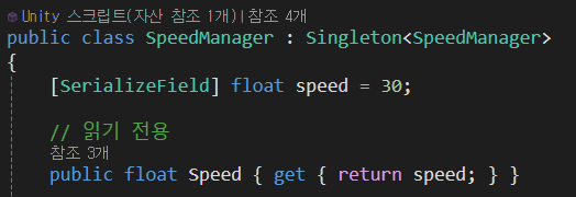 싱글톤을 사용하여 SpeedManager에 있는 스피드 값을 읽기 전용으로 가져가서 사용한다