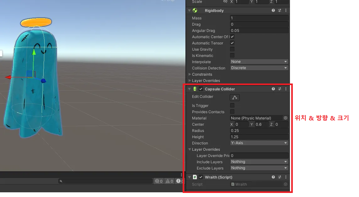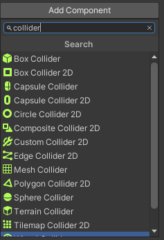 콜라이더의 종류는 다양하게 있으니, 게임 오브젝트에 맞는 형태를 선택하는 것이 좋다