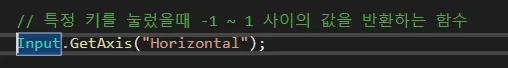 움직임 제어에 대해 사용할 것이니 실제 GetAxis()함수를 사용해보자