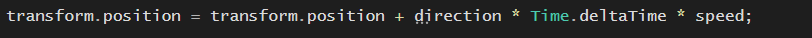 transform.position = transform.position + direction * Time.deltaTime * speed;
