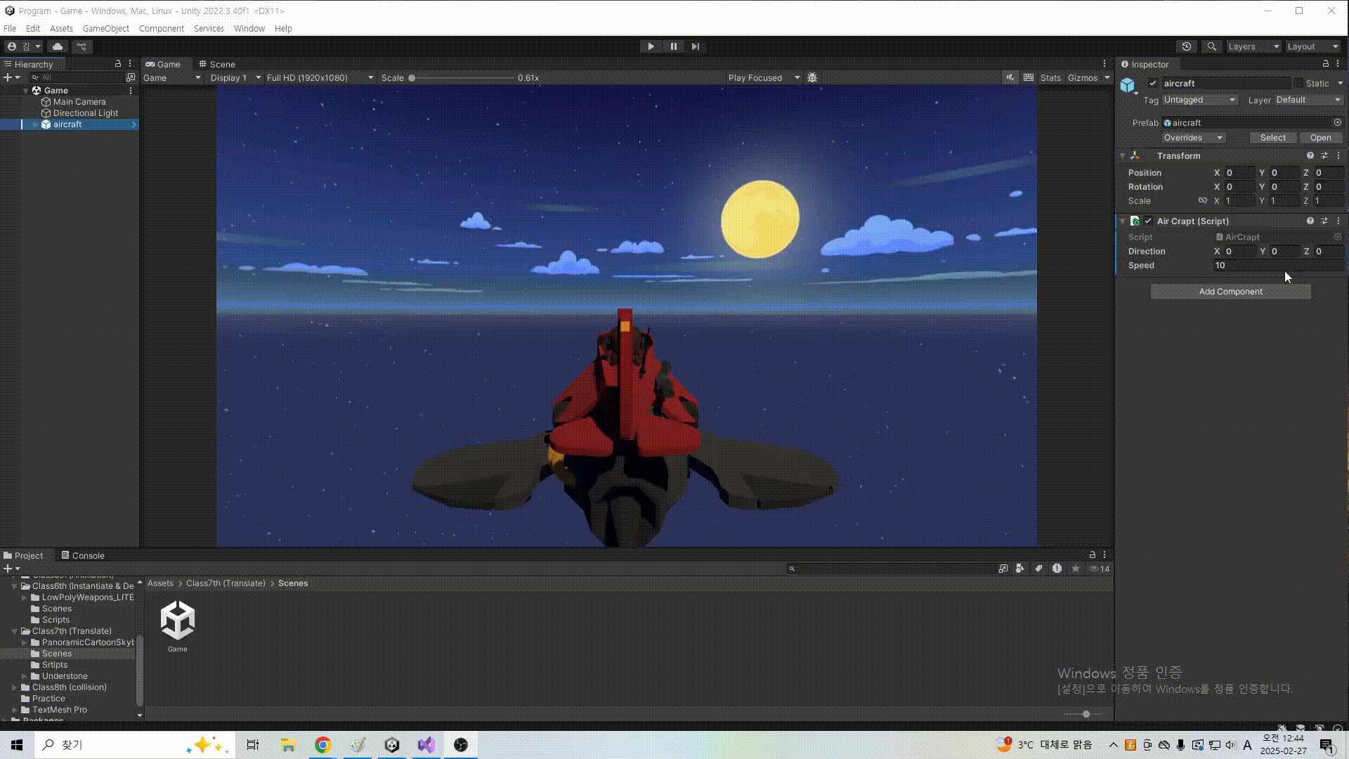 -> 이를 위해, 프레임 속도와 관계없이 객체가 일정한 속도로 움직이거나 회전하게 만들어주는 Time.deltaTime
