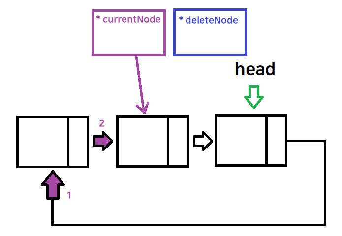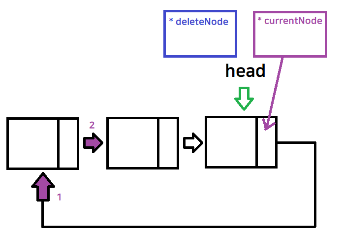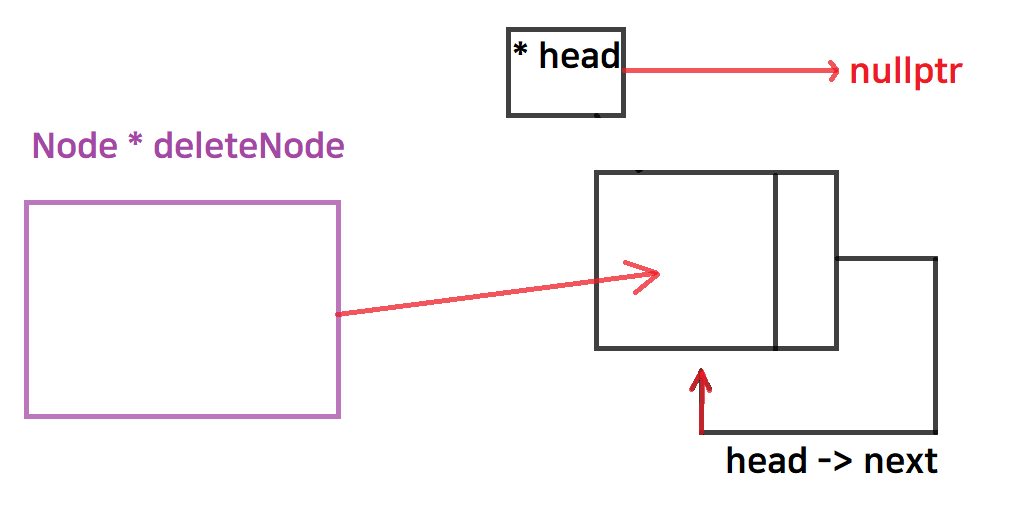 deleteNode가 가리키고 있던 노드를 delete 삭제