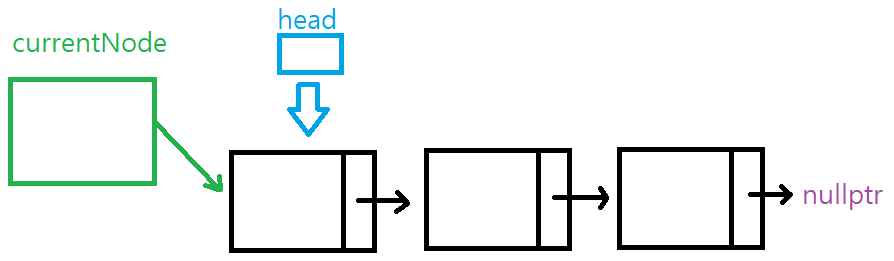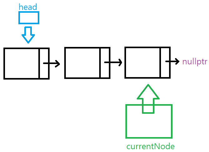 반복문을 통해서 currentNode를 계속 이동시켜준 뒤 currentNode -> next가 nullptr인 곳에 도착함