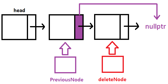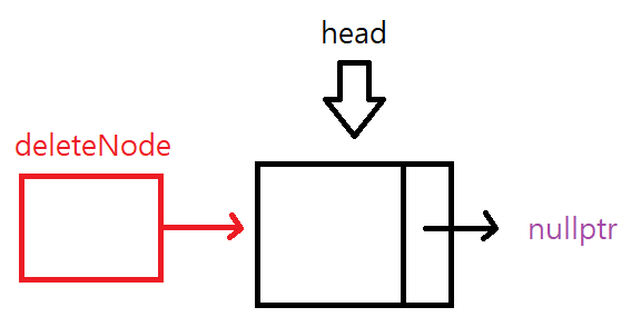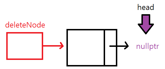 deleteNode를 생성하고 head를 가리키게 한 뒤 deleteNode -> next를 nullptr로 가리키게 함