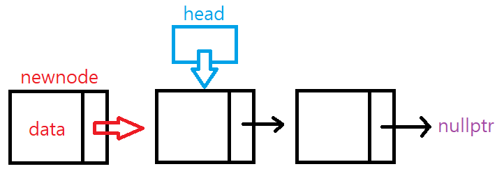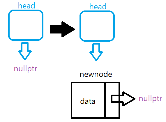 newnode에 데이터를 넣고 newnode -> next 는 nullptr을 가리키게 함