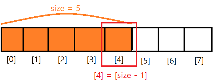 배열에 데이터를 넣어준 뒤 size++하여 이동