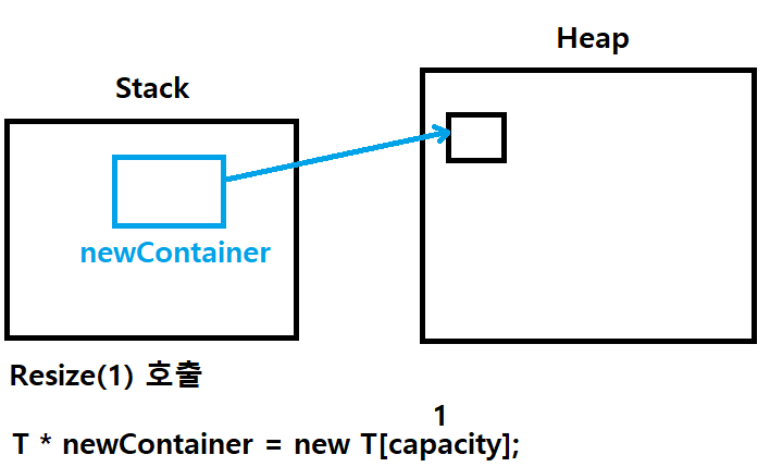 size 가 capacity보다 크거나 같을 경우 -> 할당된 메모리 크기보다 더 큰 양의 원소가 들어갈경우 capacity를 새로 할당해서 만들어 줘야 한다