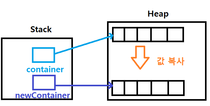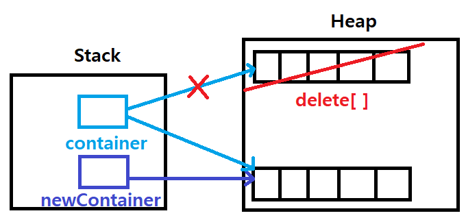 container 포인터의 값을 새로 할당된 배열로 연결시켜주면 된다