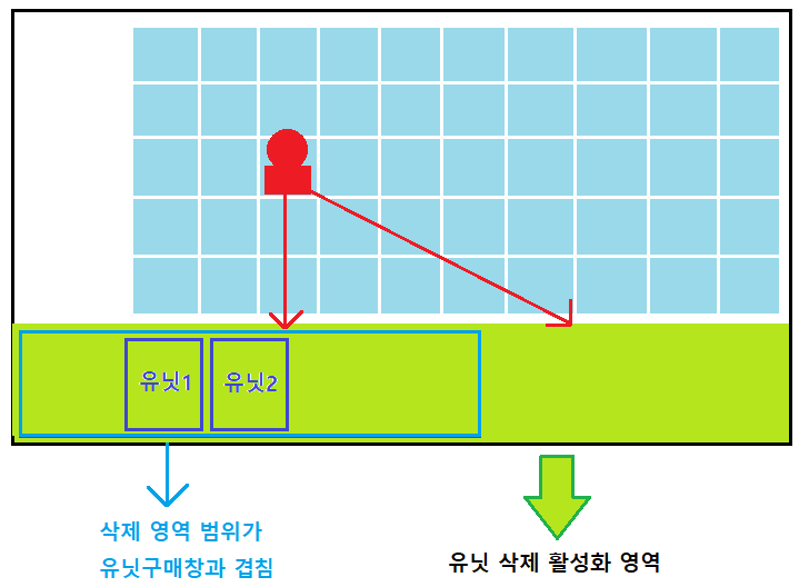 유닛을 들고있는 상태에서 삭제 존으로 이동하고 클릭하면 유닛이 삭제되도록 해야한다