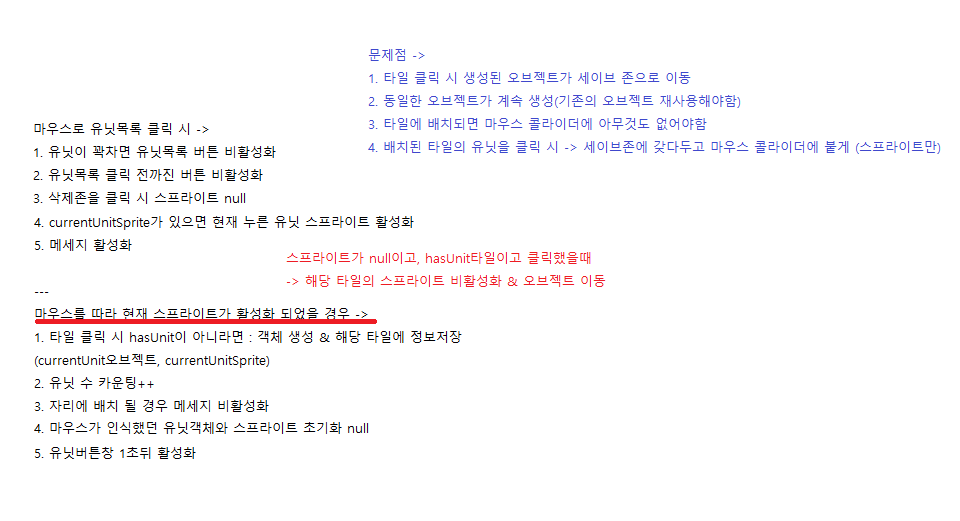 가장 어려웠던 부분은 '타일에 배치된 유닛을 다시 집어서 이동시키기' 였다