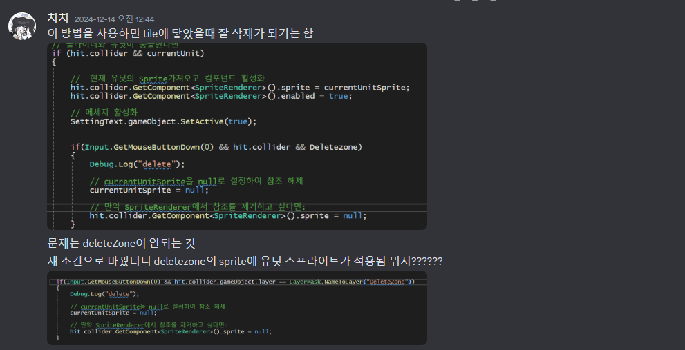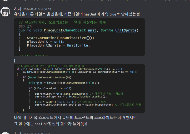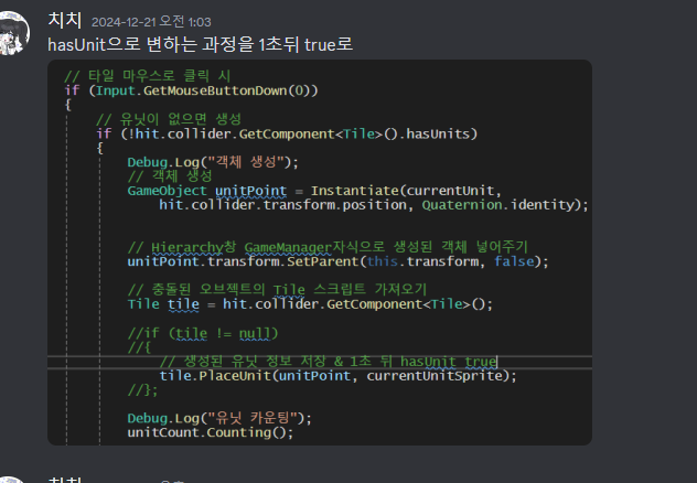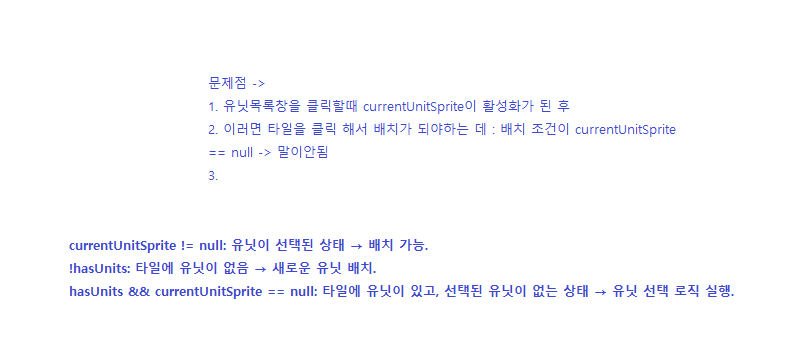 tile.PlaceUnit(currentUnit, currentUnitSprite); // 타일에 유닛 저장