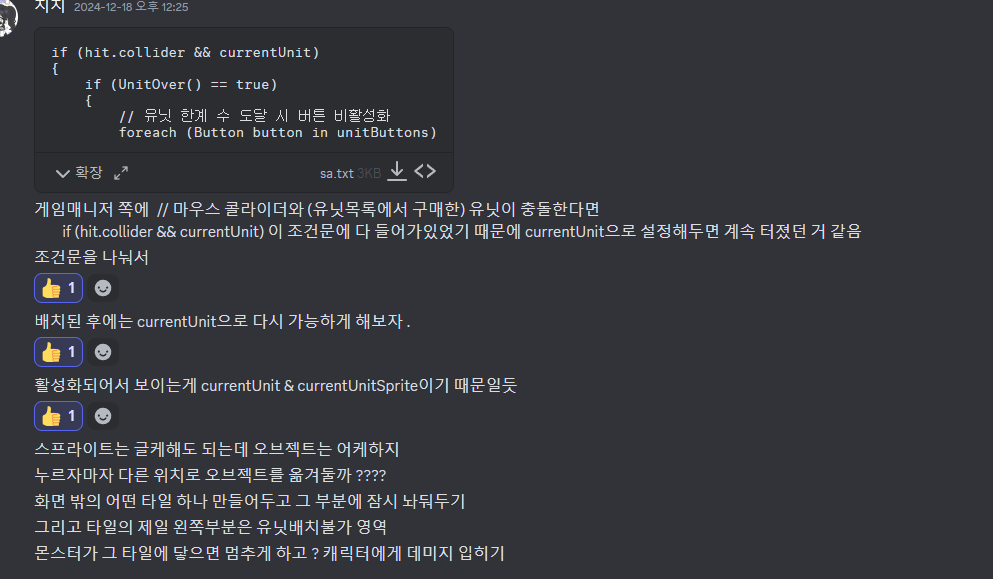 // 마우스 콜라이더와 (유닛목록에서 구매한) 유닛이 충돌한다면