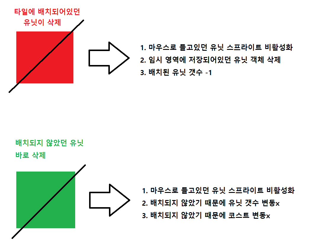 유닛을 구매한 뒤 바로 삭제 영역에 가져가서 삭제하는 경우