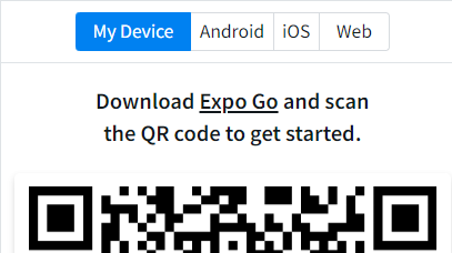 핸드폰에 Expo 애플리케이션이 있다면 브라우저에 My Device버튼을 누르면 나오는 QR코드를 스캔하기만 하면 된다.
