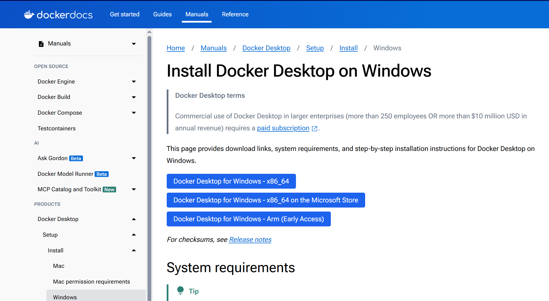 그 다음 Docker 설치파일 다운로드 및 설치.