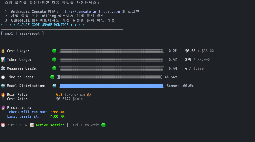 서론의 문제를 해결 하기 위해 Claude Code Usage Monitor가 탄생 하였다.