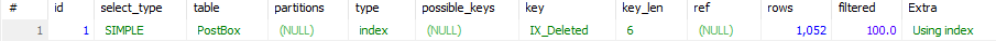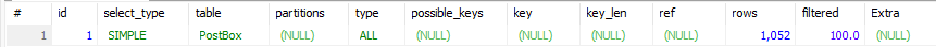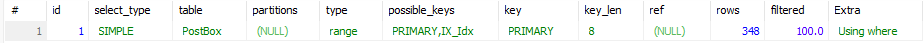 EXLAIN SELECT * FROM PostBox WHERE Id > 500;
