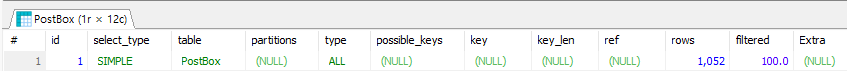 1053개 정도의 더미 데이터가 들어이는 PostBox(우편함) 테이블을 기준으로 테스트 해봤습니다.