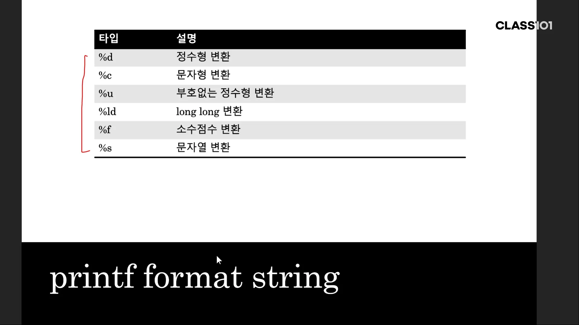 - printf 변환 문자는 format string 이라고 불립니다. 이 포맷스트링에는 여러 종류가 있으나. 실질적으로 필요할 때 찾아볼 수 있는 수준이면 됩니다.