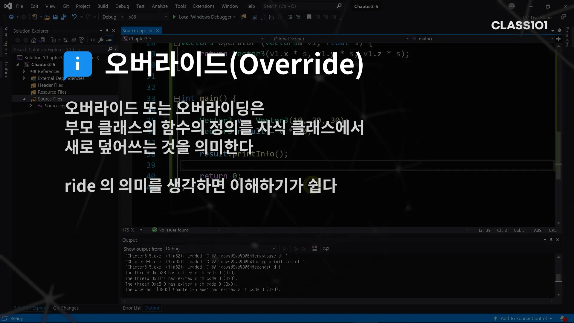오버라이드 또는 오버라이딩은 부모 클래스의 함수의 정의를 자식클래스에서 새로 만들어내는 것을 의미합니다.