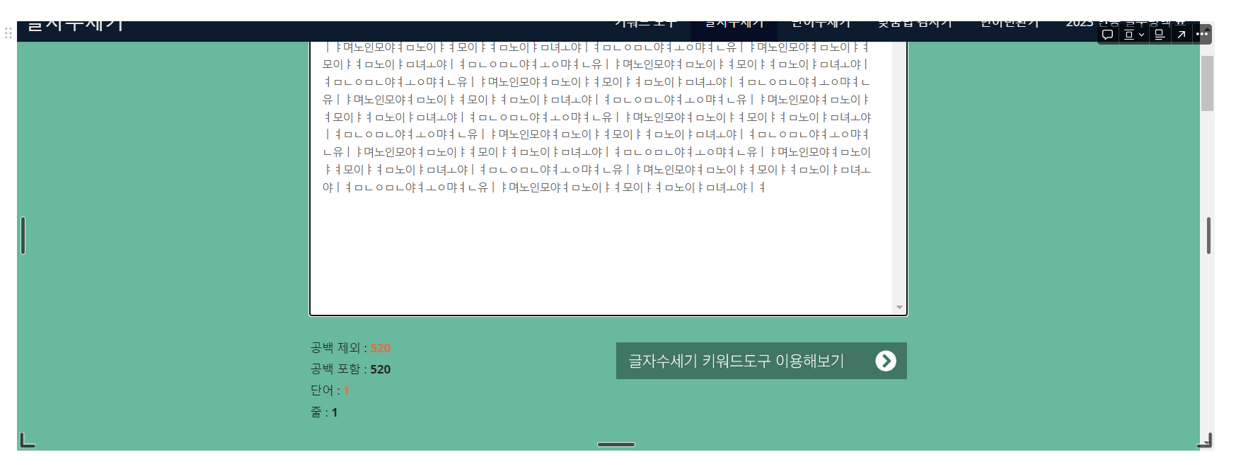 그리고 글자수 세기를 사용하려면 수식을 사용하고 등등.. 꽤 복잡했다.