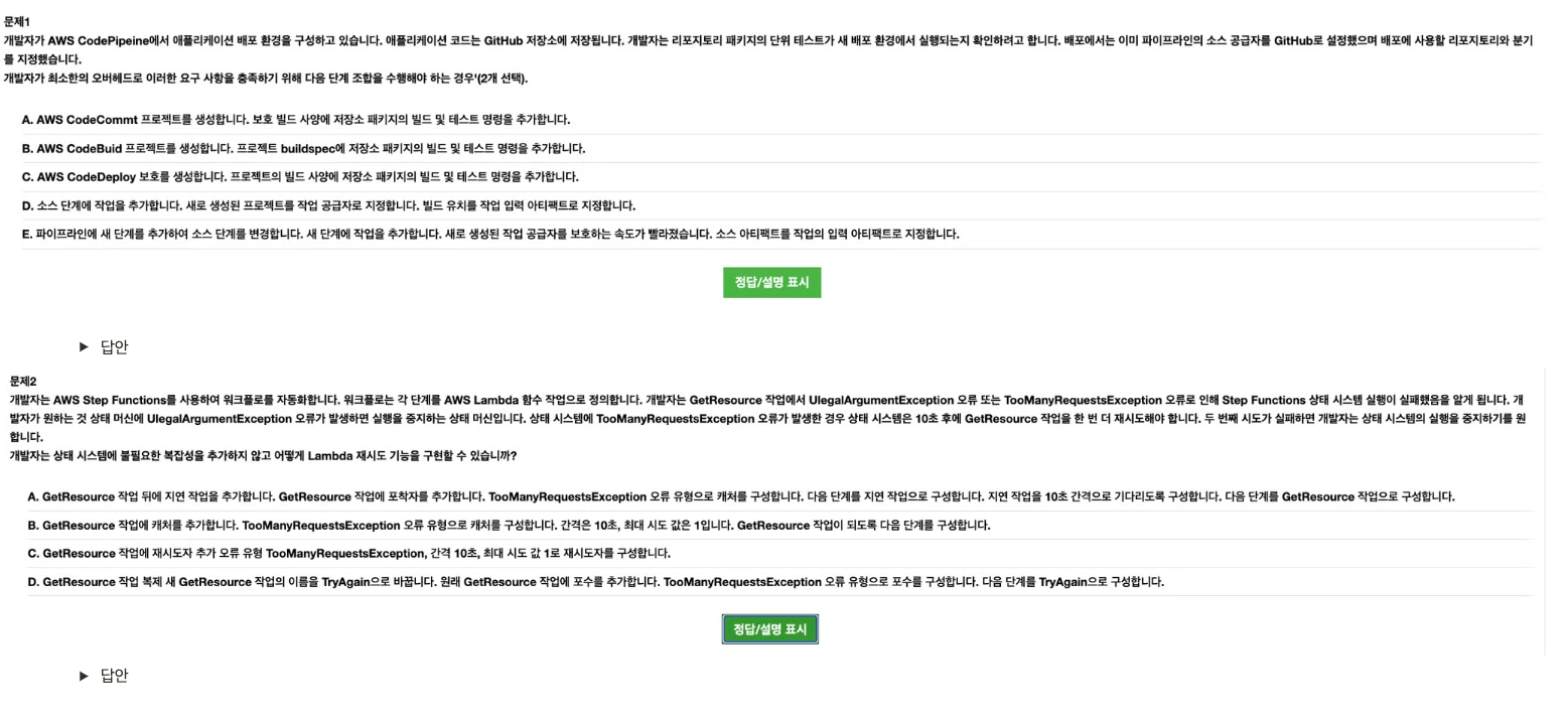 저는 따로 구매하지 않고 풀어 총 덤프 약 120? 문제 정도를 어느정도 숙지하고 시험을 보았습니다. 참고로 itdumpskr의 번역은 상당히 엉터리라는 점 알아두시면 좋을 것 같습니다. (예로 IAM이 오후 1시 정책 즉 1AM 이라고 번역되는 등 이미지 텍스트 기능 사용해서 복붙한것 같았습니다.)