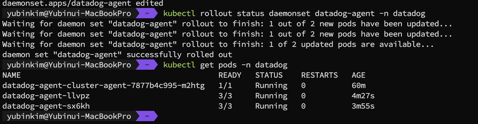 Datadog Helm 차트를 최신 버전으로 업그레이드하려면 다음 명령어를 통해 실행할 수 있습니다.