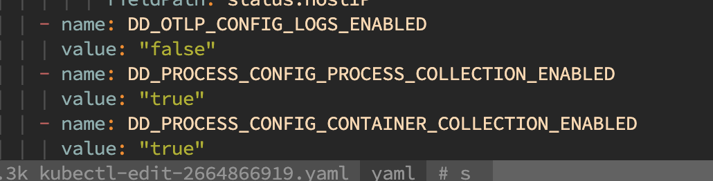 datadog.logs.enabled: 컨테이너 로그 수집 활성화datadog.apm.enabled: 애플리케이션 APM 모니터링 활성화datadog.processAgent.enabled: 프로세스 모니터링 활성화datadog.metrics.enabled: 기본 메트릭 수집 활성화