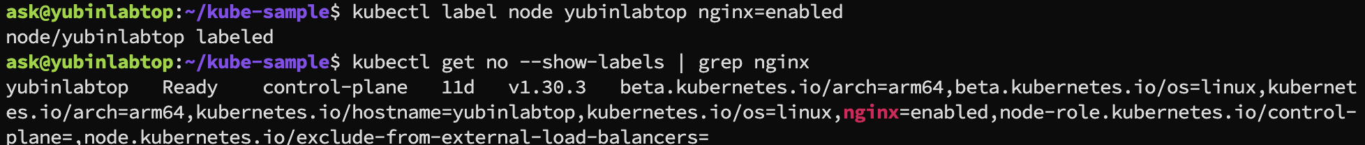 kubectl label node yubinlabtop nginx=enabled