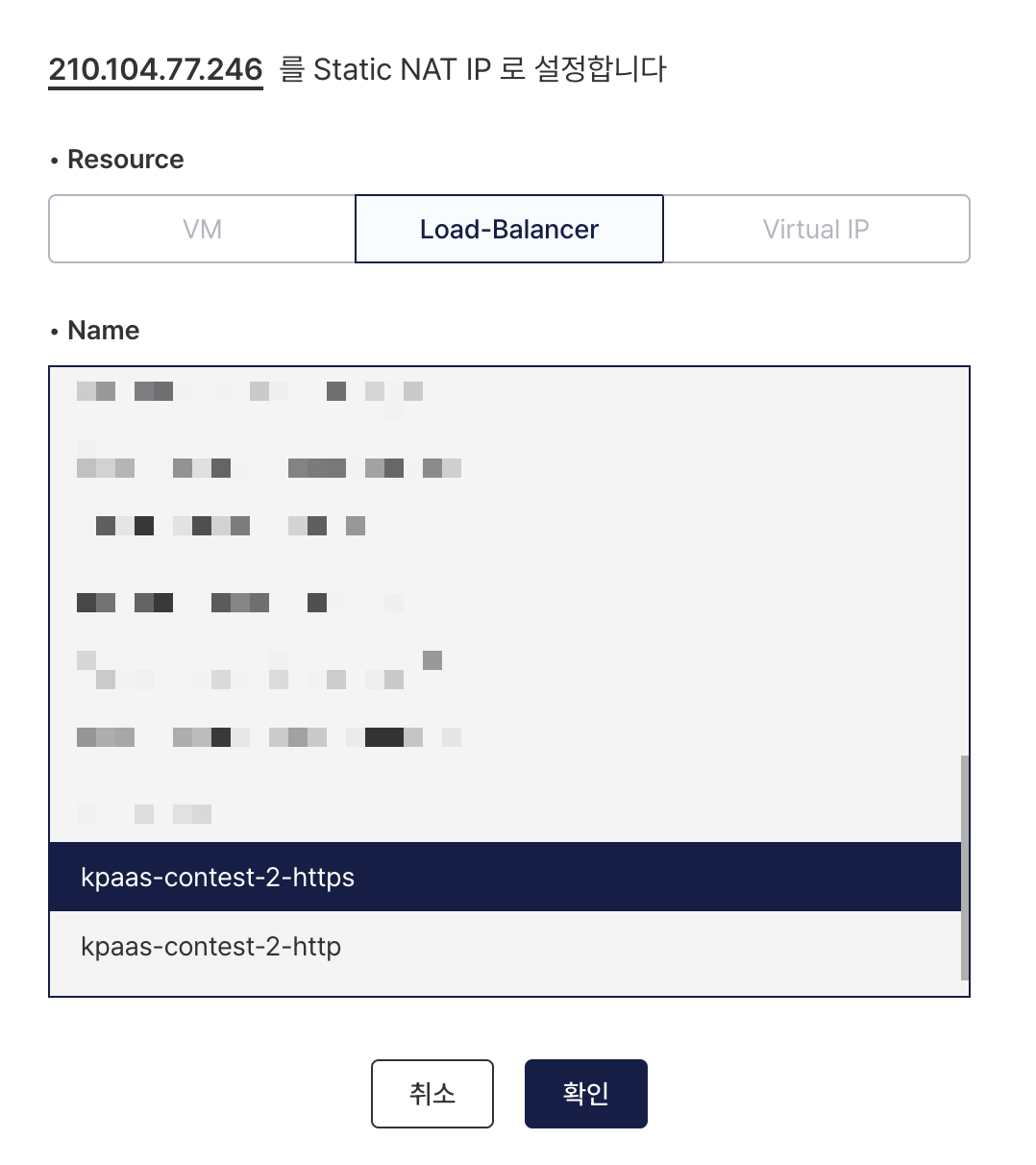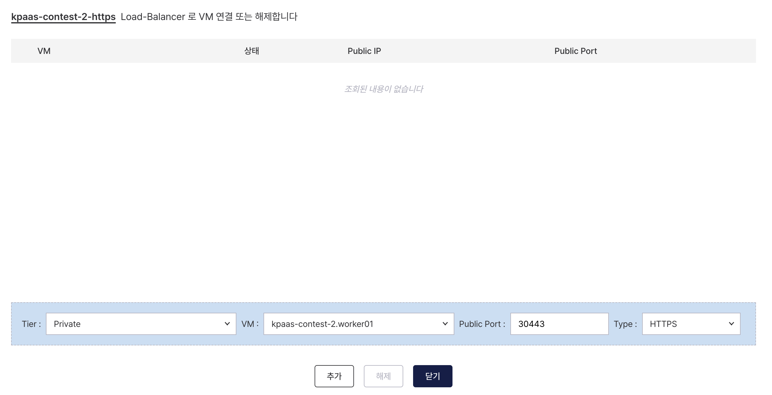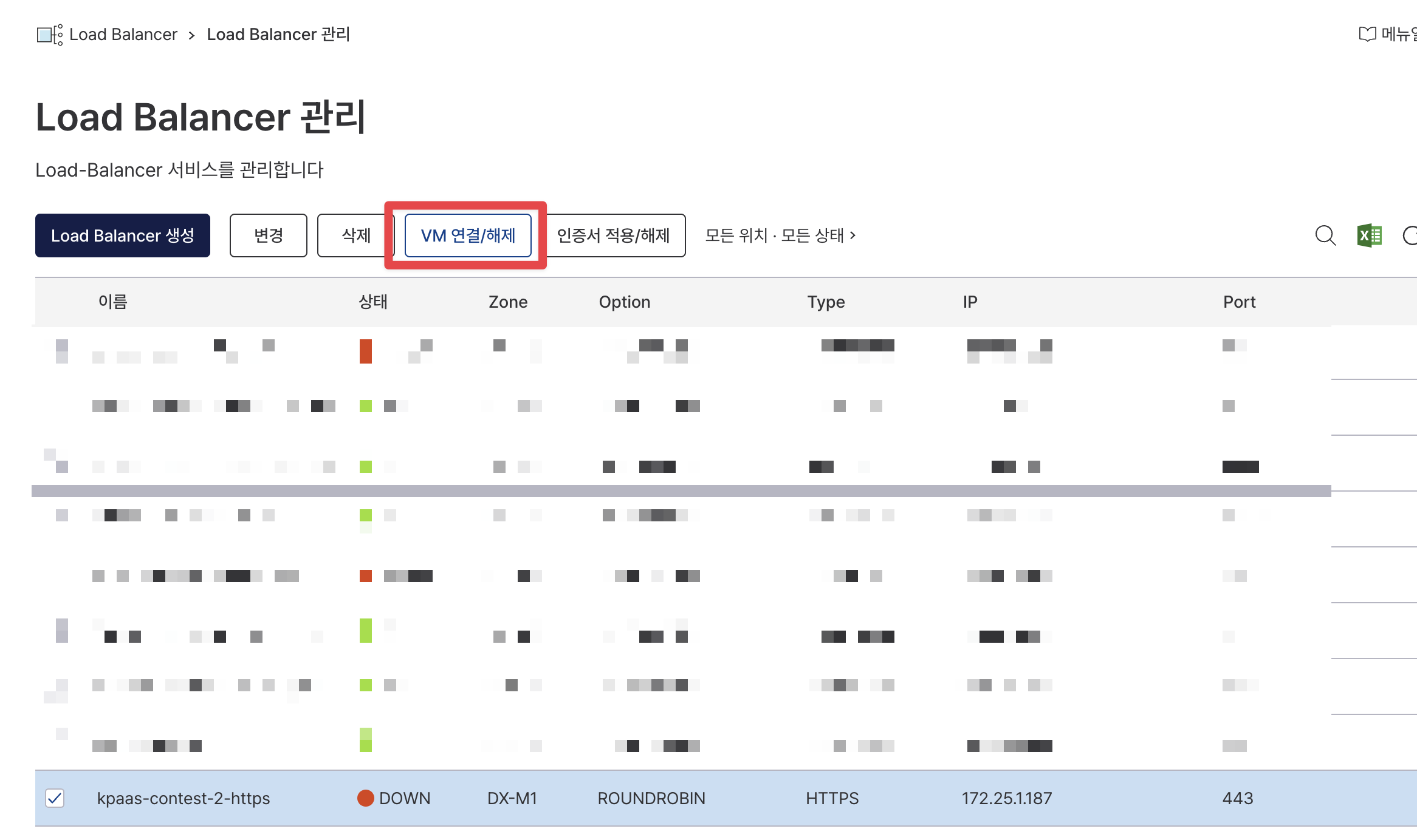 로드밸런서 목록에서 방금 생성한 https용 loadbalancer의 사설 ip를 확인합니다.