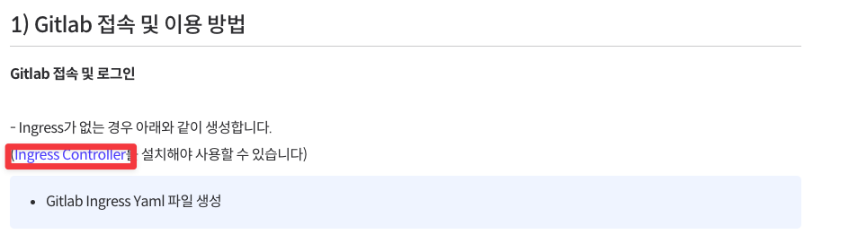 Gitlab 접속 및 이용 방법 적용을 위해 ingress controller 적용.