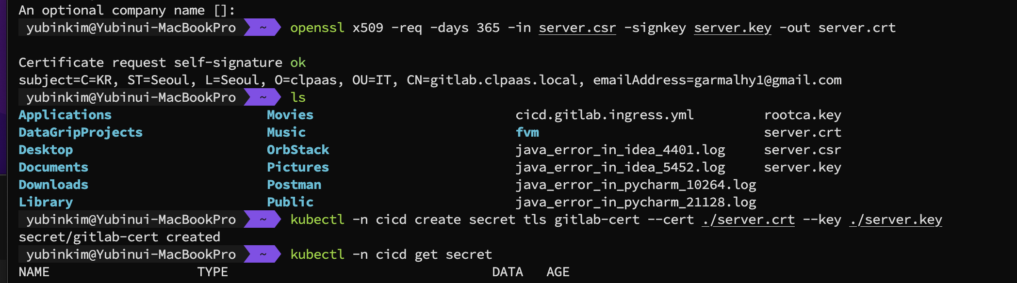 kubectl -n cicd create secret tls gitlab-cert --cert ./server.crt --key ./server.key