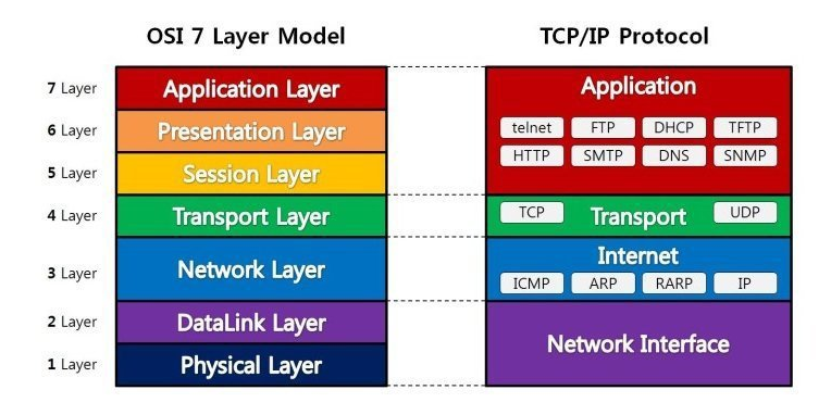 - 주요 기능: 응용 프로그램의 네트워크 접근, 데이터 변환, 형식화, 메시지 처리, 네트워크 서비스 제공